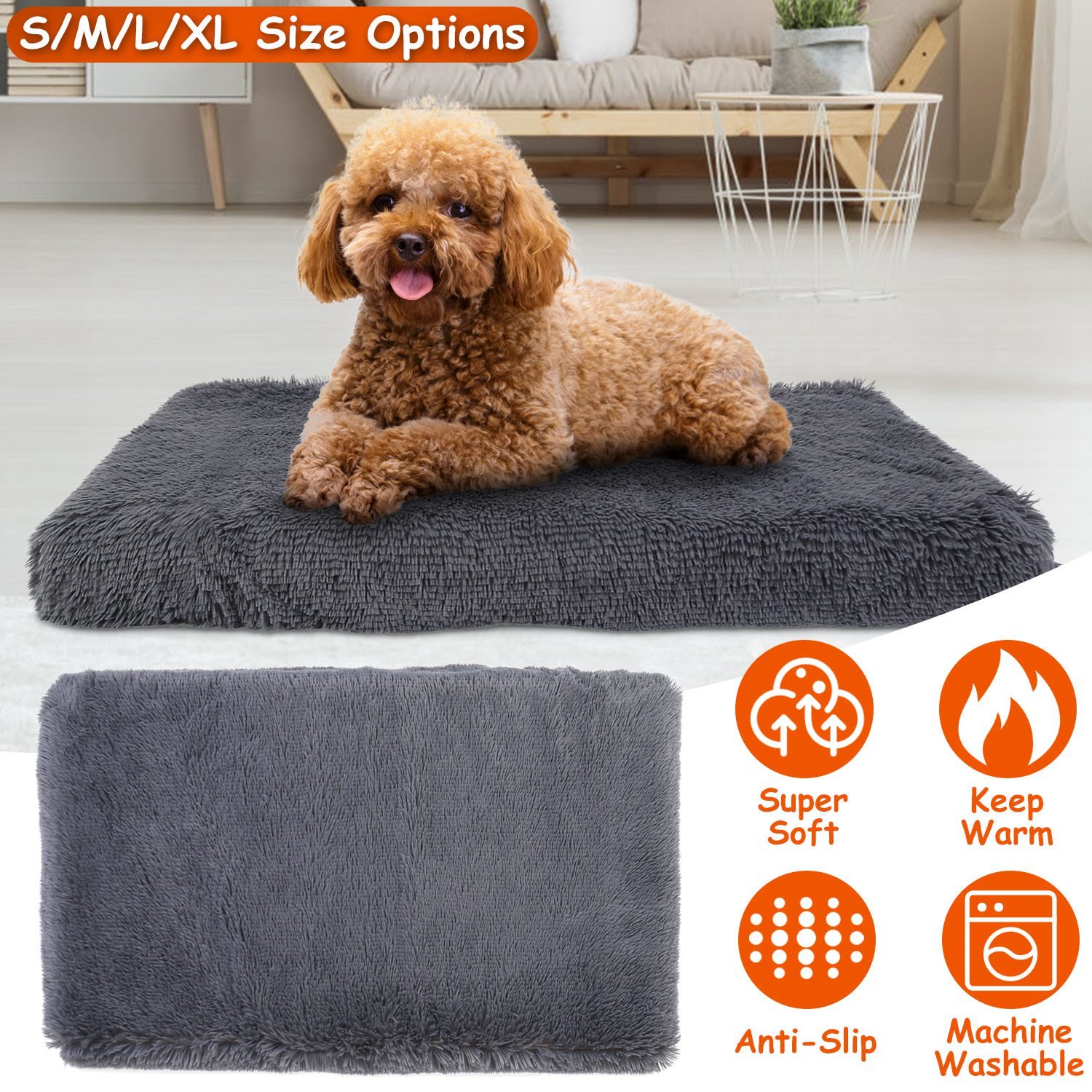 Home > Dog Bed Soft Plush Cushion Cozy Warm Pet Crate Mat Dog Carpet Mattress with Long Plush for S/M Dogs