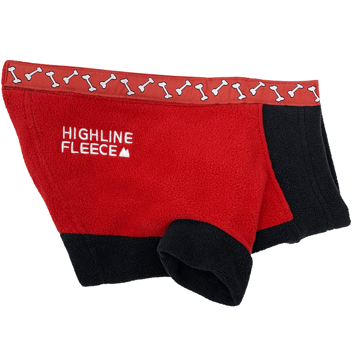 Highline Fleece Dog Coat - Red and Black with Rolling Bones